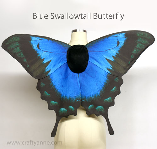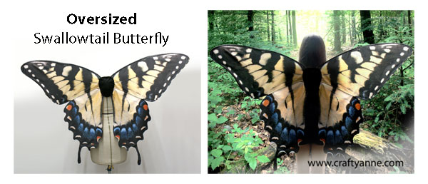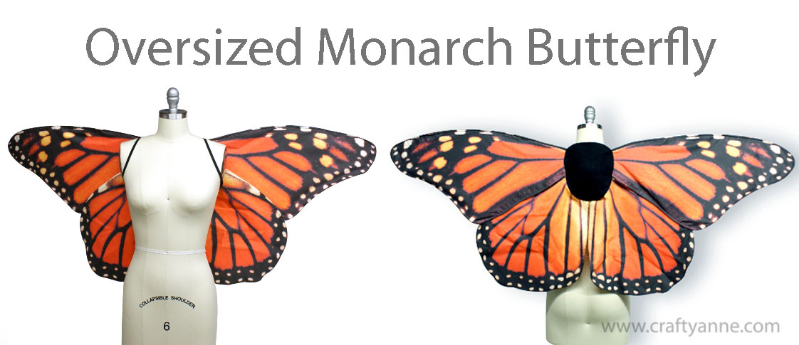 The finished wings measure 29.5 inches across the widest part and 17 inches tall (from the top of the upper wings to the bottom of the tail).