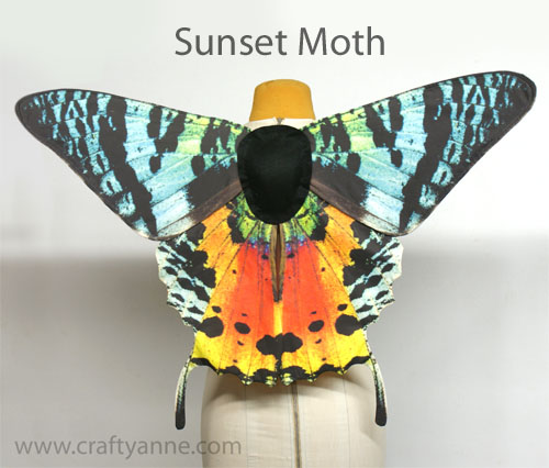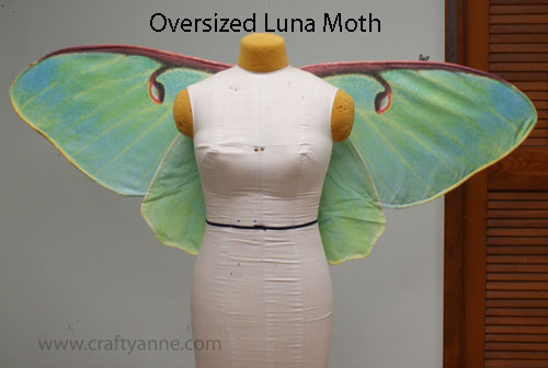 Luna Moth. Finished wings measure 31.5 inches across the widest part and 25 inches tall (from the top of the upper wings to the bottom of the tail).